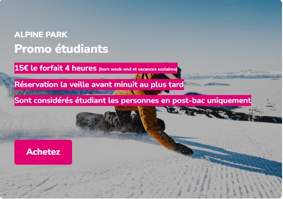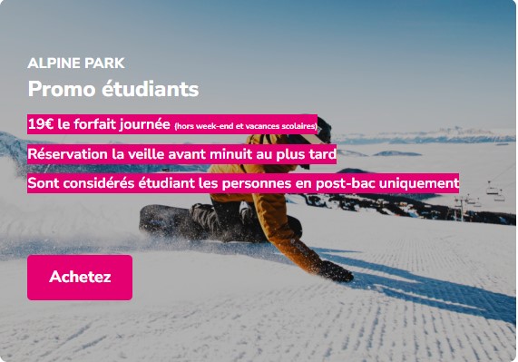 La PROMO ÉTUDIANTS : Venez profiter de tarifs à prix réduit à Chamrousse, offre "semaine" valable hors week-end, hors jours fériés et hors vacances scolaires :