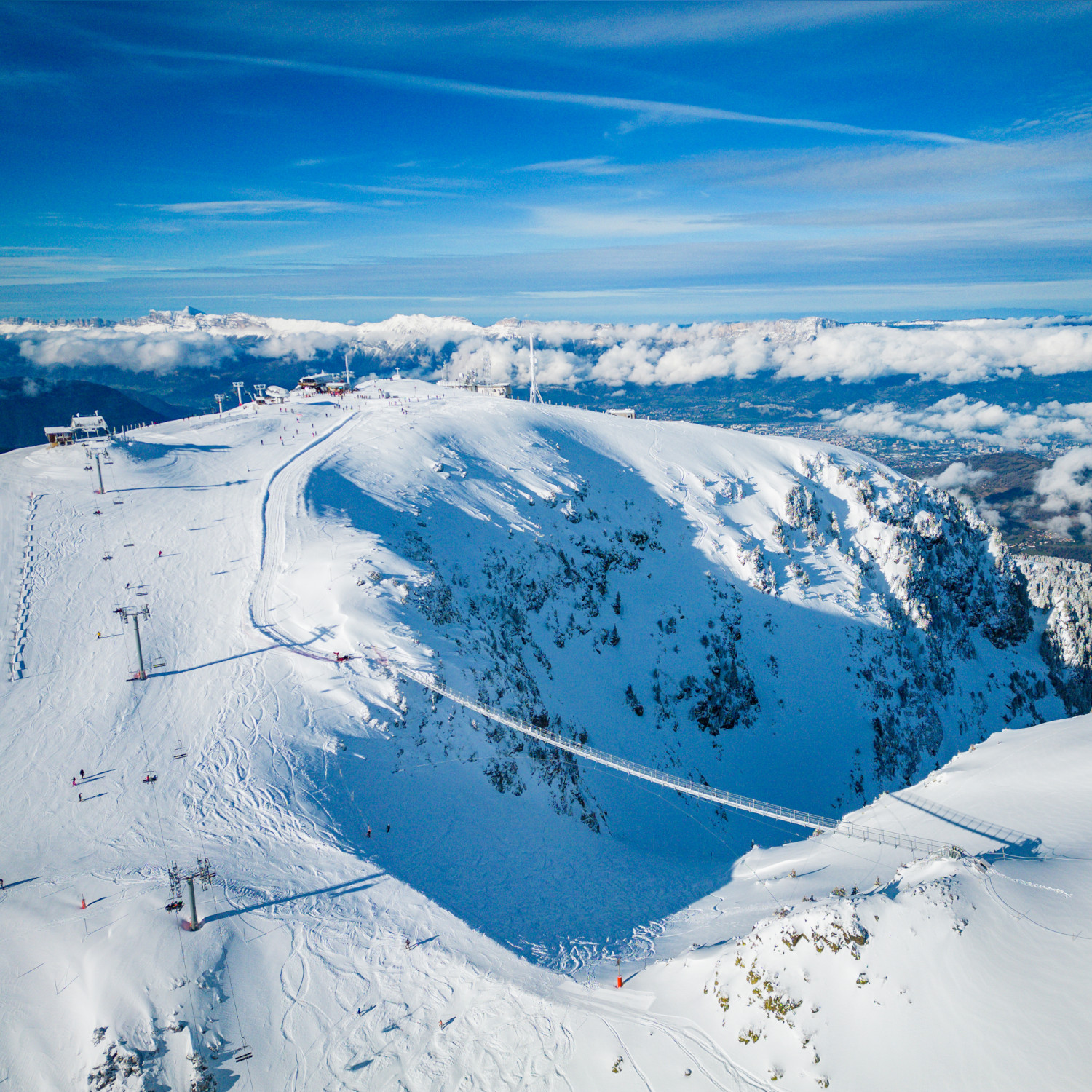 - 1 forfait piéton aller-retour en télécabine pour profiter du "Panoramic Park". Prenez le temps de vister le sommet avec son belvédère Oisans, son rooftop, ses vues incroyables (massifs, lacs de Laffrey, Grenoble ou mer de nuages) et sa zone pique-nique. Accessibles via des cheminements piétons sécurisés, le "Panoramic Park" comprend même une passerelle himalayenne au-dessus de la piste de Casserousse : exceptionnel !